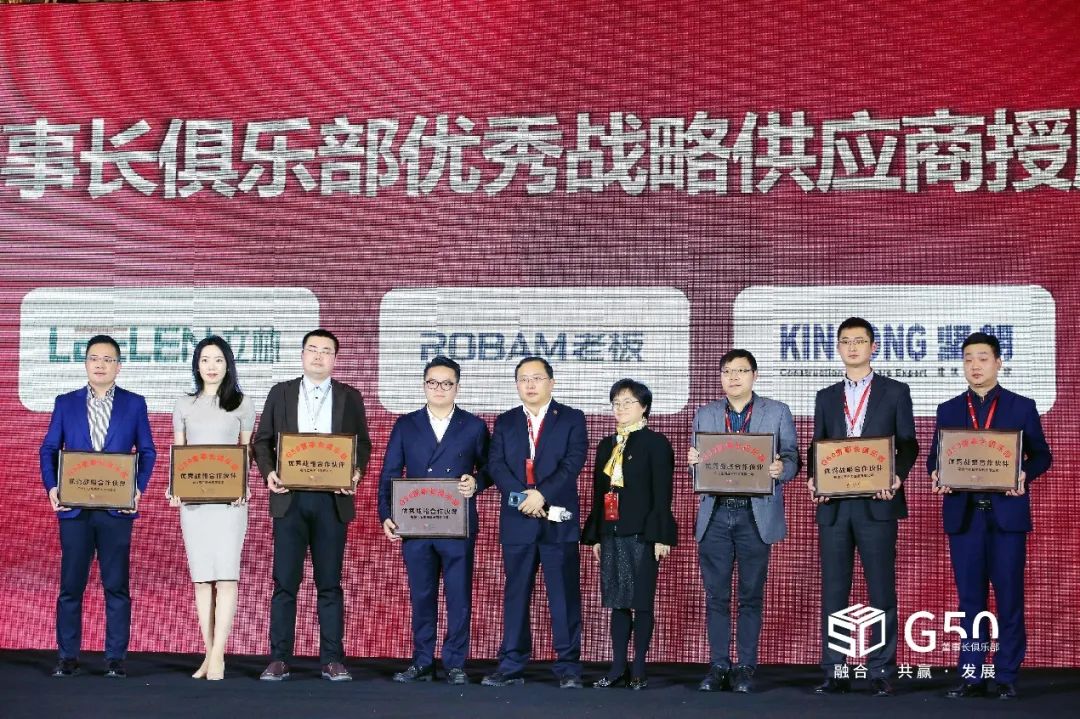 廣州光日電梯工業(yè)有限公司、九牧廚衛(wèi)股份有限公司、杭州老板電器股份有限公司、廈門立林科技有限公司、深圳市泰和安科技有限公司、天津萬高電力設備有限公司、廣東堅朗建材銷售有限公司七家集采合作伙伴被授予"G50優(yōu)秀戰(zhàn)略供應商"稱號。