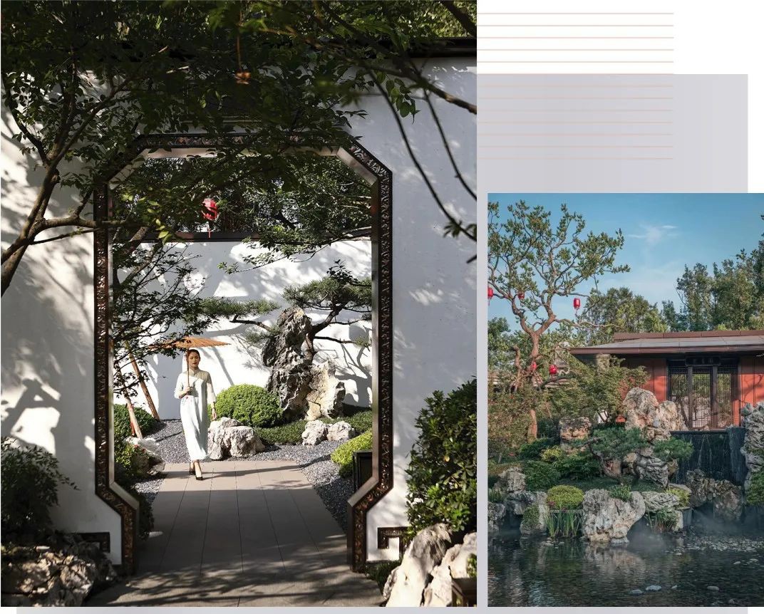江山樾引江山入園,不僅結(jié)合當(dāng)?shù)氐淖匀画h(huán)境進(jìn)行量身定制,而且園林中的林、木、水、石都十分講究,仿佛隨時(shí)隨地都置身山水畫卷中。