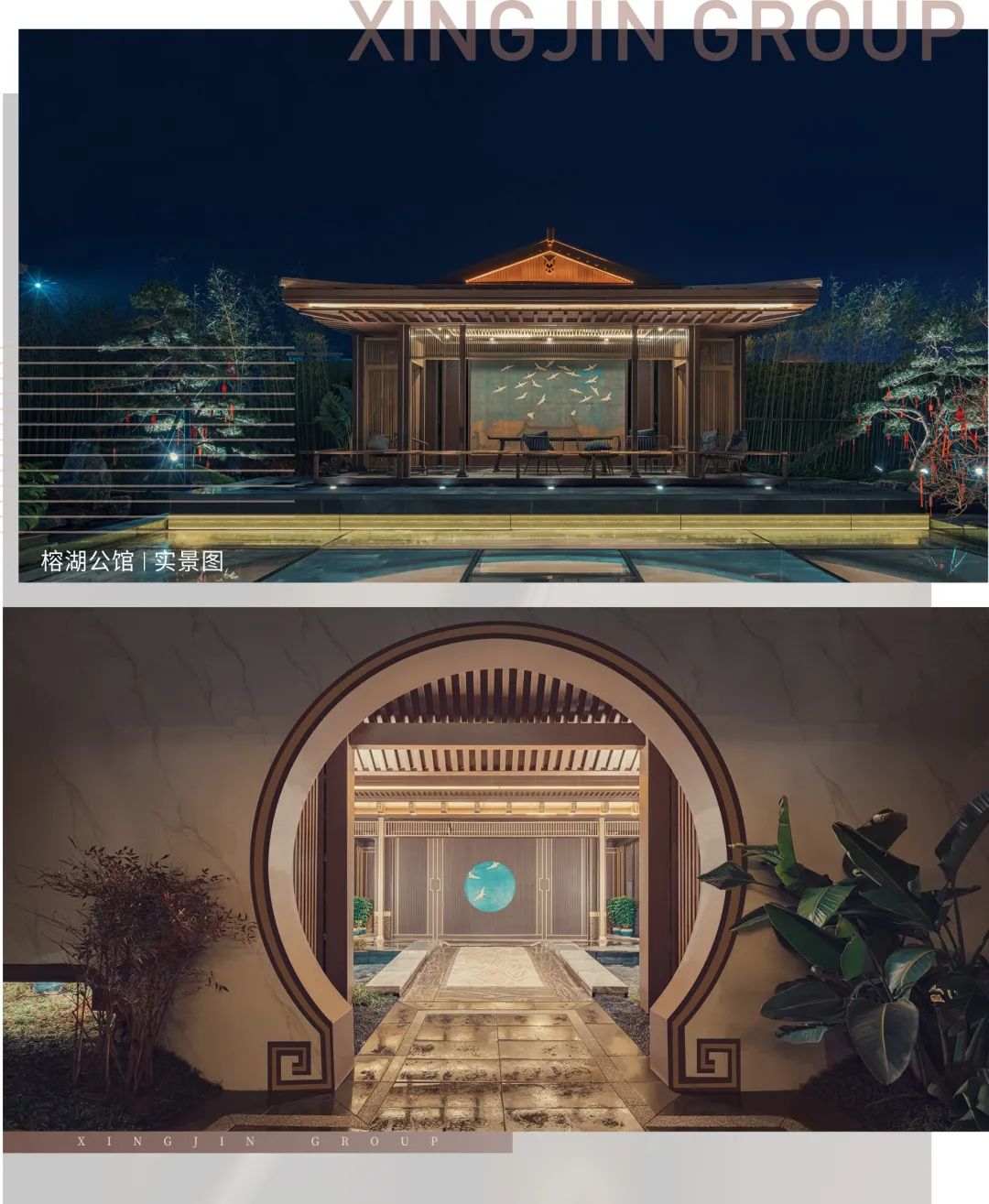 江山樾邀請(qǐng)名師匠人,結(jié)合桂林的歷史人文風(fēng)情,對(duì)建筑的中式元素進(jìn)行定制,以金色為主基調(diào),采用了王府的規(guī)制,將廡殿頂作為屋頂結(jié)構(gòu),并大量使用云紋、回形紋、山形紋等中式符號(hào)。