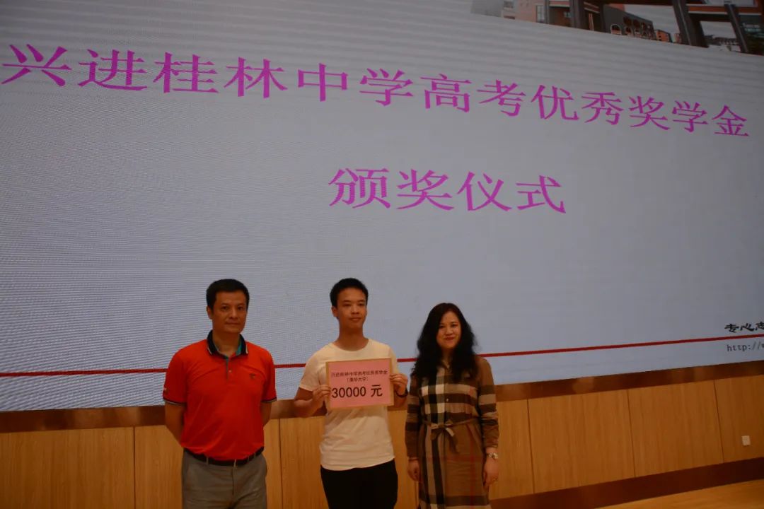每年開學(xué)典禮上,"興進(jìn)獎(jiǎng)學(xué)金"、"國(guó)強(qiáng)獎(jiǎng)學(xué)金"頒發(fā)的一幕,早已成為桂林中學(xué)學(xué)子們激動(dòng)人心的一幕,激勵(lì)他們像學(xué)長(zhǎng)一樣優(yōu)秀有為,并懷著感恩之心去回饋社會(huì)、反哺社會(huì)。