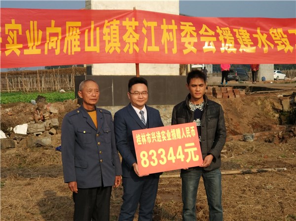 2017年12月28日下午,一直關注農(nóng)村基礎設施建設,熱衷幫扶事業(yè)的桂林市興進集團代表一行來到了雁山鎮(zhèn)茶江村。為村里帶來了援建水毀工程的捐贈款,這可把父老鄉(xiāng)親們高興壞了!